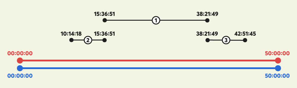 | "50:00:00" | "50:00:00" | ["15:36:51-38:21:49", "10:14:18-15:36:51", "38:21:49-42:51:45"] | "00:00:00" |