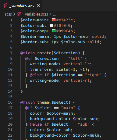 - 변수들만 모아두는 scss파일을 따로 만들어서 사용할 수도 있음
